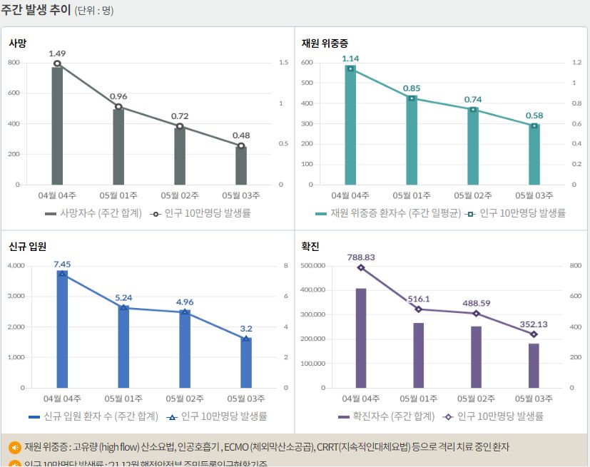 | 코로나19집계(2022.5.22. 0시기준): 확진 +1.9만, 사망 +54명, 위중증병상가동률 17%, 재택치료 17만(집중관리 1.1만) (0) | 2022.05.22 |