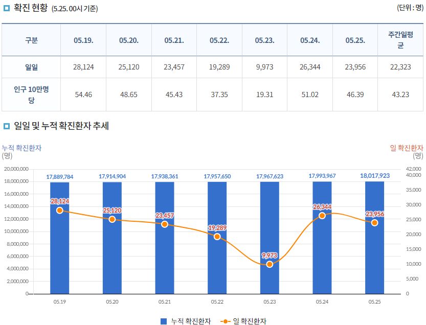| 코로나19집계(2022.5.23. 0시기준): 확진 +9975명★, 사망 +22명, 위중증병상가동률 18%, 재택치료 15만(집중관리 1만) (0) | 2022.05.23 |