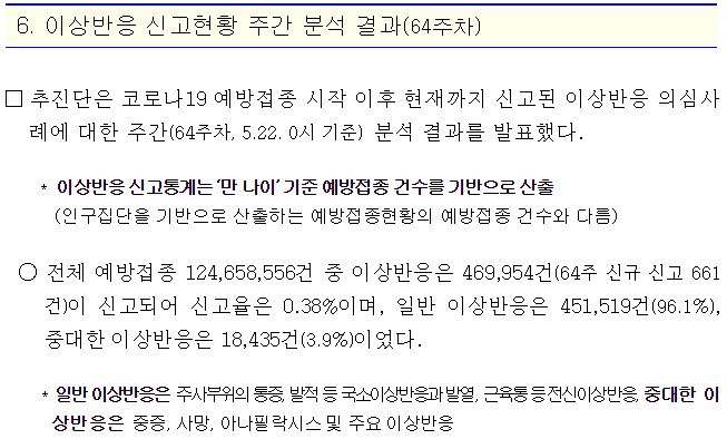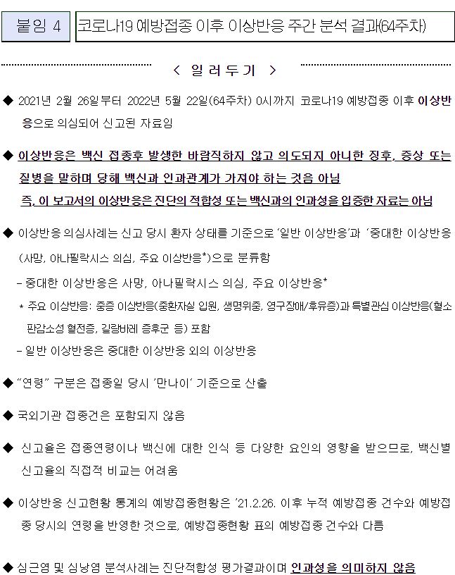 코로나19(2022.5.26) 이상반응 신고현황 주간 분석 결과(64주차)/:/ ’22년 제10차 코로나19 예방접종피해보상 전문위원회 결과 본문