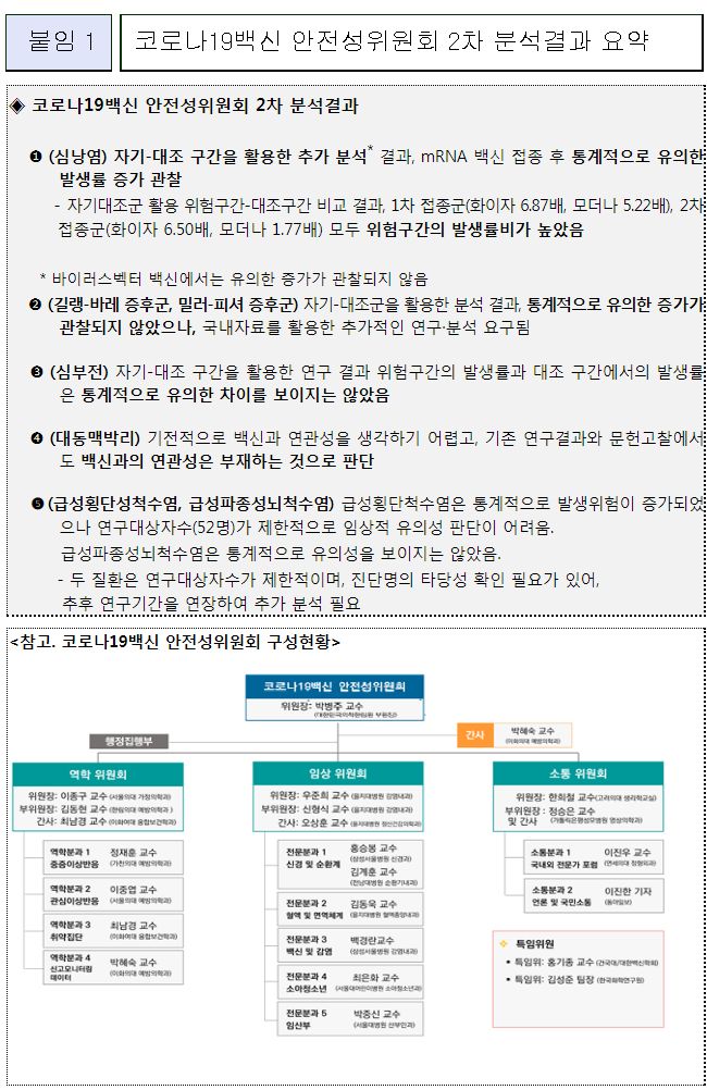 코로나19백신 안전성위원회 2차 분석결과 요약