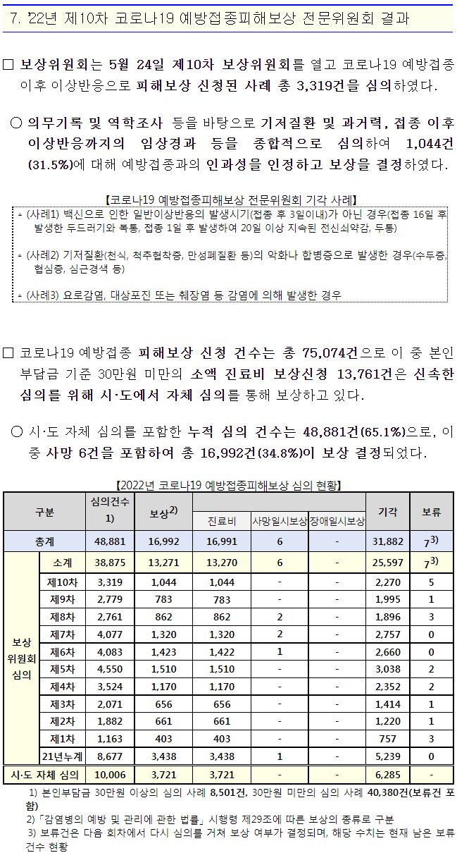 ’22년 제10차 코로나19 예방접종피해보상 전문위원회 결과