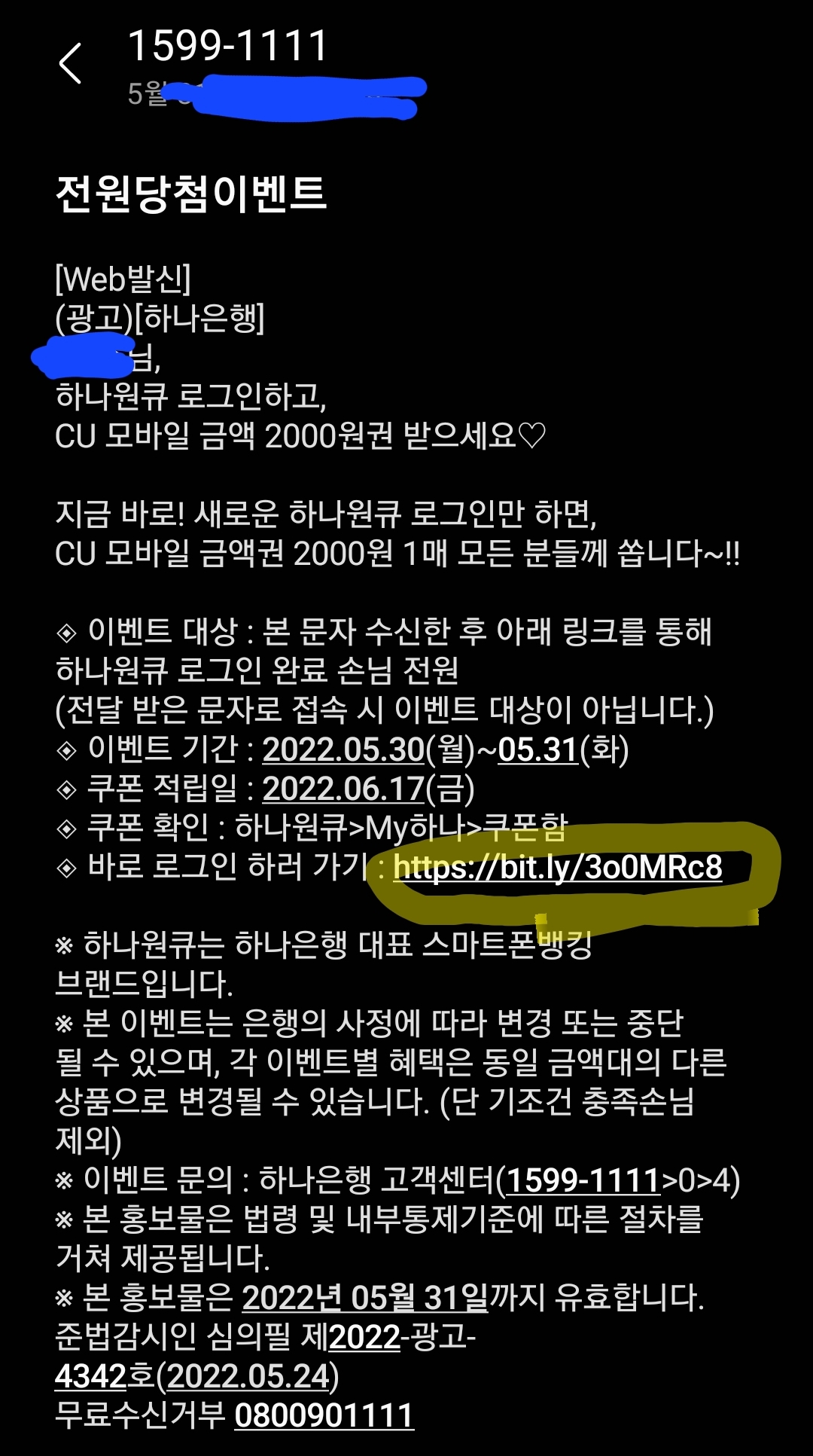 아예 카카오톡 채널(네이버 라인도 좋고요)로 보내는 것도 그냥 sms보다는 믿을 만합니다. sms는 발신처가 하나은행임을 보장하기가 좀.. 웹발송표시가 없어도 대표번호는 기억하지 않는 사람이 많으므로. (통화앱을 깔아쓰면 부가기능으로 알려주는 게 있긴 하겠지만. 삼성전자 기본앱은 그런 것 - 15xx/116xx 대표번호가 사칭이 아닌지, 그 회사가 맞는지 체크하는 기능 - 이 아직 없습니다.)