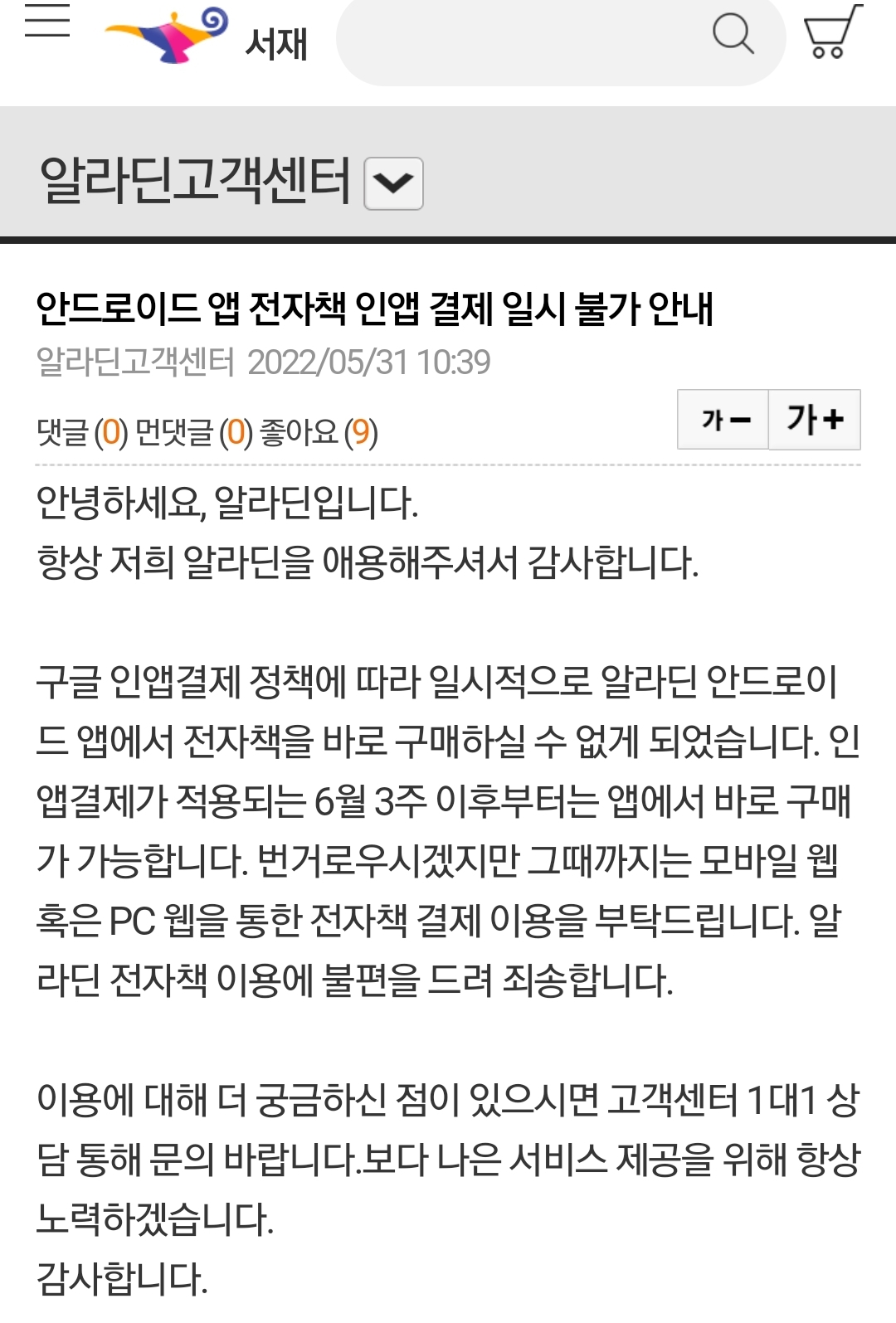 어느 온라인서점의 공지입니다.