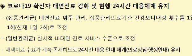 재택치료지침이 조금 바뀌었습니다. 재택치료 자체는 당분간 유지합니다.