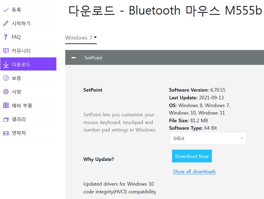 로지텍 블루투스 마우스 M555b SW(SetPoint) 설치 본문