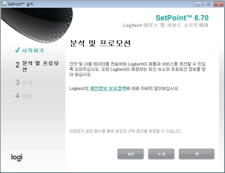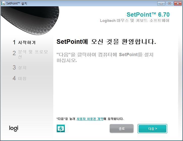 옵션에서 OS설정을 사용하기부분을 꺼주시고 로지텍 set point에서 직접 제어하도록 하세요.