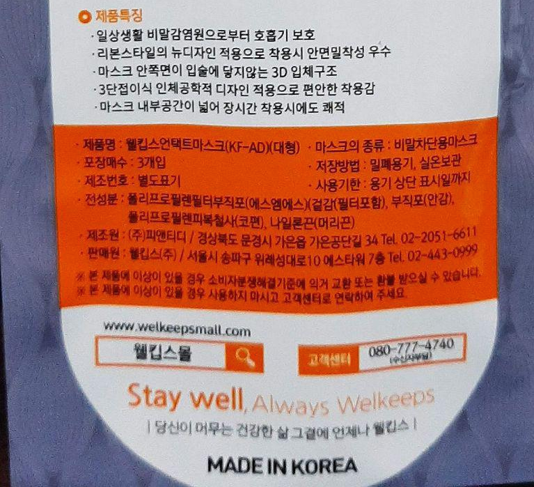 웰킵스 언택트마스크(KF-AD) 대형 비말차단용 마스크 사용기 본문