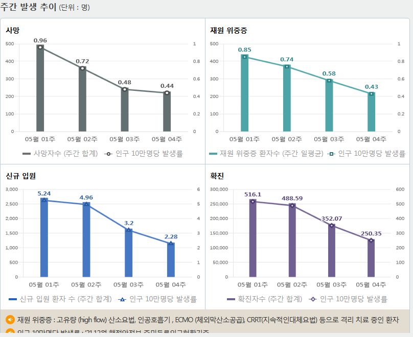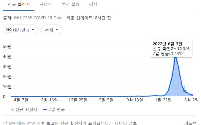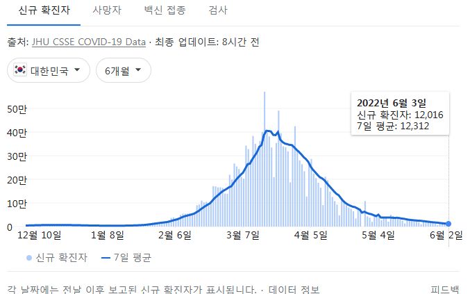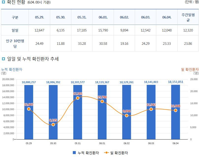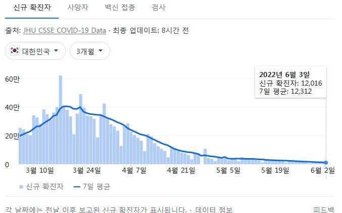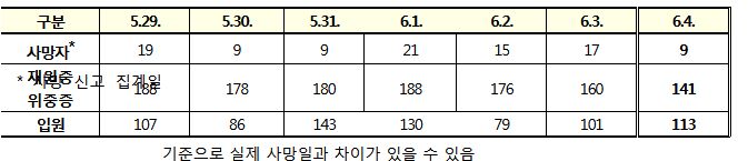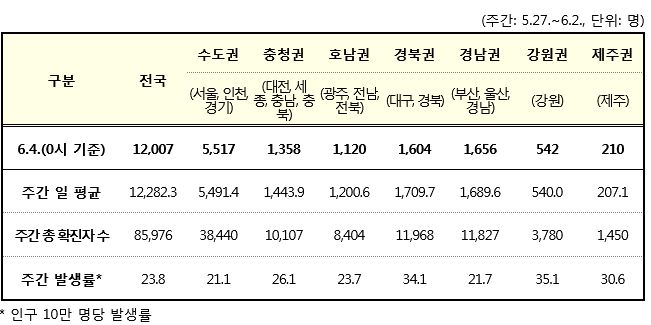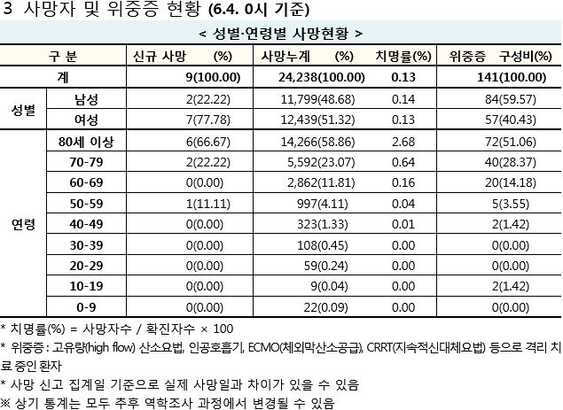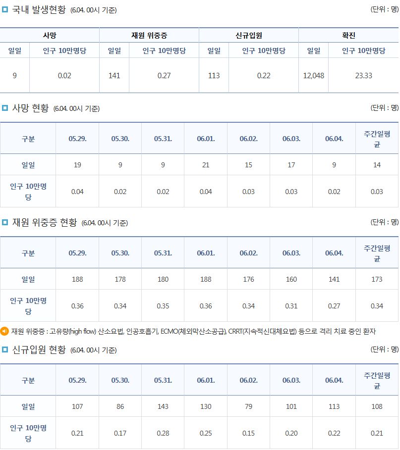 코로나19집계(2022.6.4. 0시기준): 확진 +1.2만, 사망 +9명, 위중증병상가동률 9%, 재택치료 8.4만(집중관리 4.5천) 본문