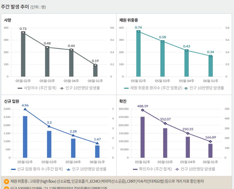 | 코로나19(2022.6.7) 주간발생동향 및 위험도 평가 (0) | 2022.06.08 |