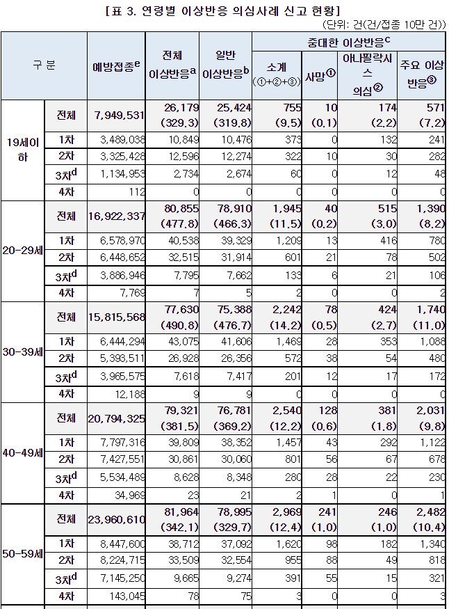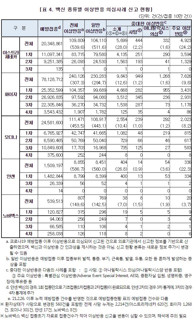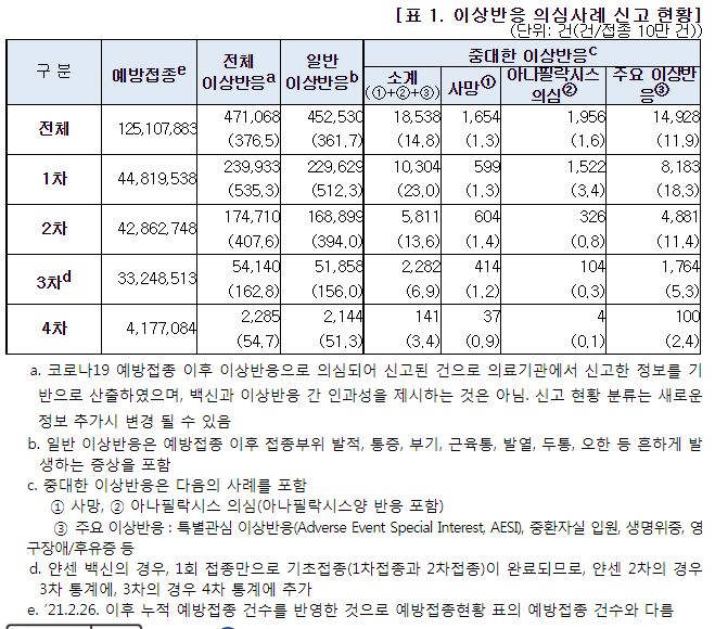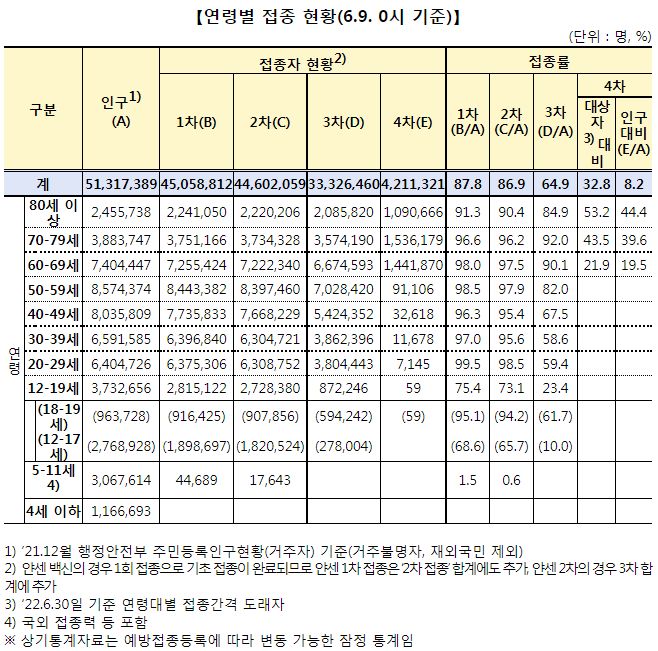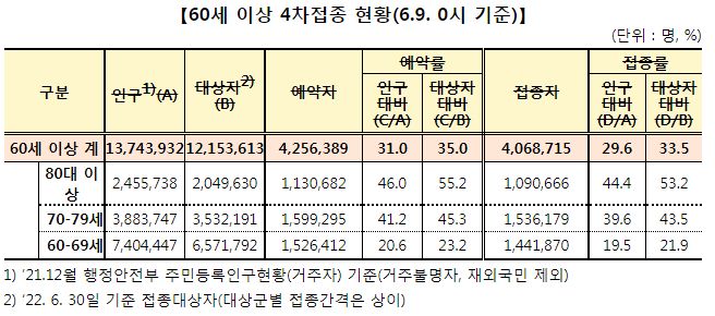 예방접종 집계 및 60세 이상 연령층 4차접종관련