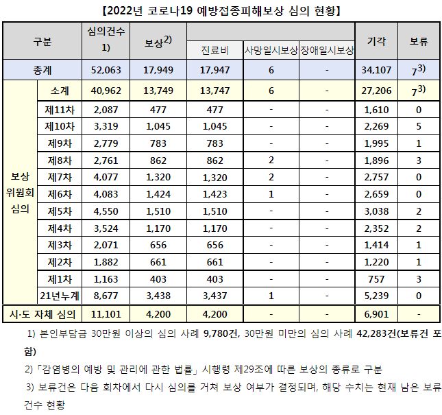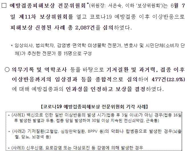 ’22년 제11차 코로나19 예방접종피해보상 전문위원회 결과