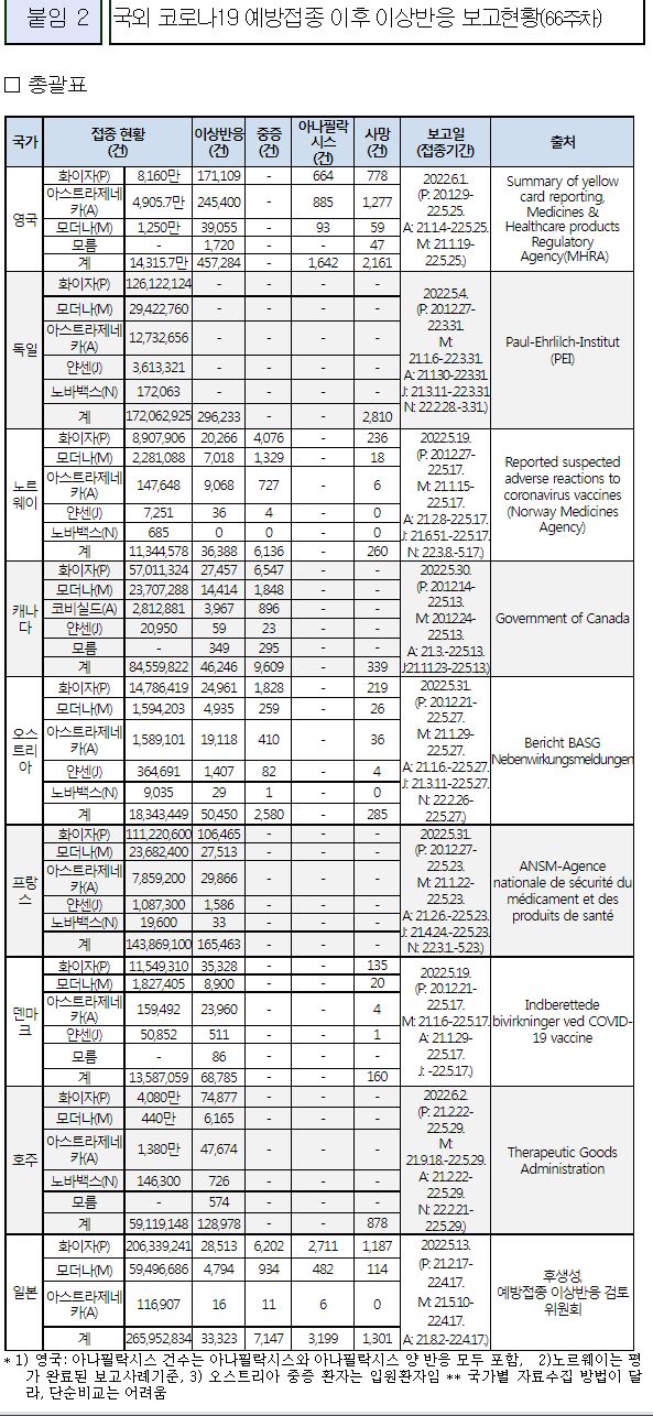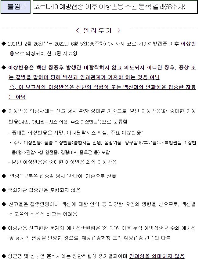 코로나19(2022.6.9) 이상반응 신고현황 주간 분석 결과(66주차)/:/ ’22년 제11차 코로나19 예방접종피해보상 전문위원회 결과 본문