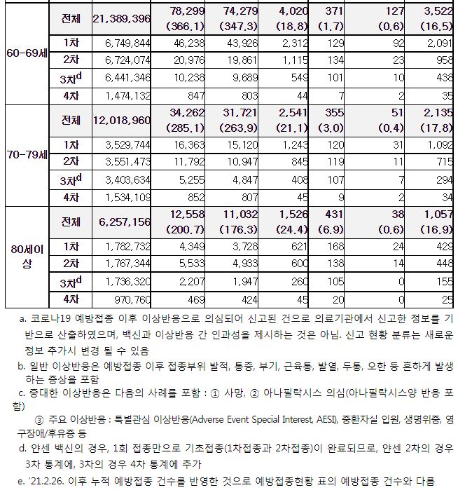 예방접종 집계 및 60세 이상 연령층 4차접종관련