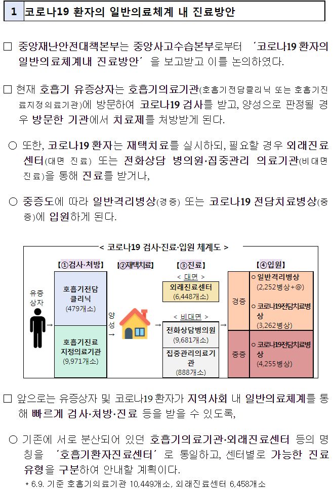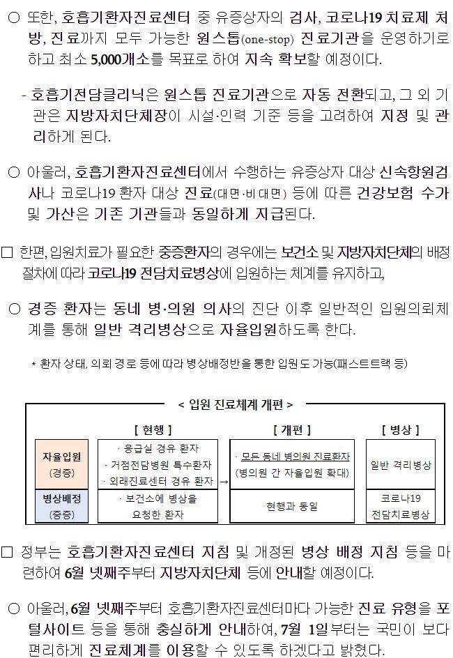 코로나19 검사‧진료‧입원 체계 개편