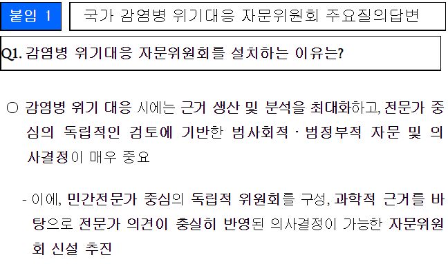 국가 감염병 위기대응 자문위원회 설치 보도자료