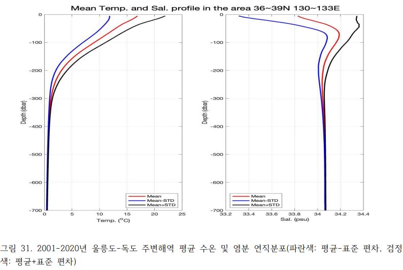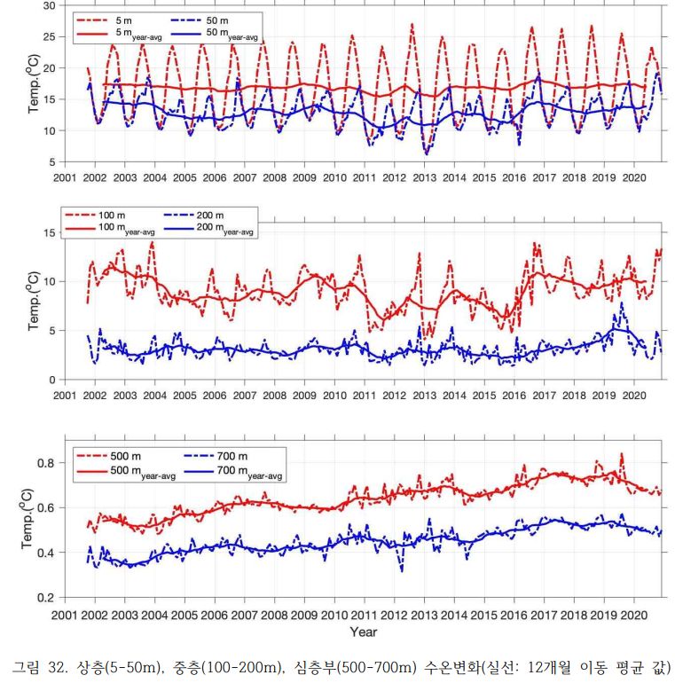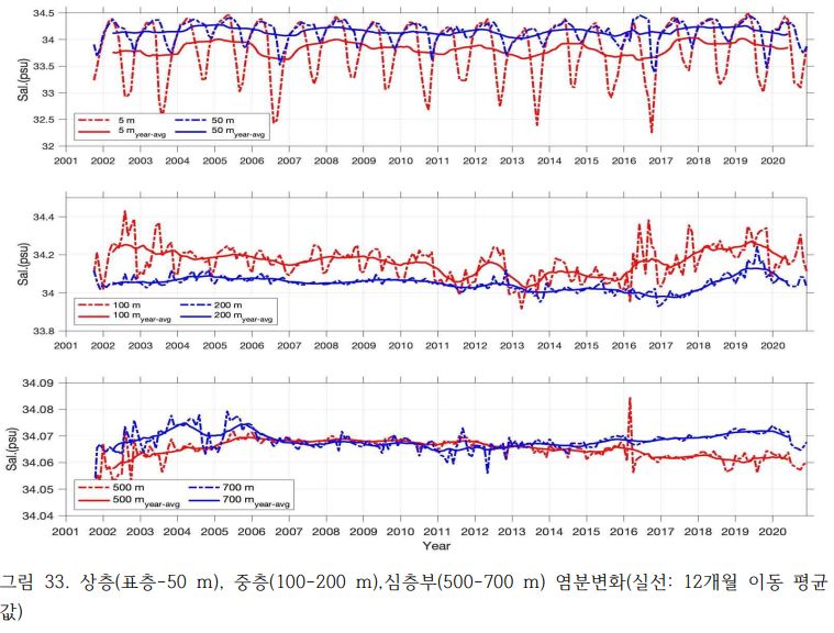 이동하지 않고 한 장소 붙박혀서 데이터를 뽑아주는 게 바람직하겠지만 바닷물도 이동하고, 특히 동해는 쿠로시오해류가 있어서 심해라 해도 영향을 많이 받나 보네요.