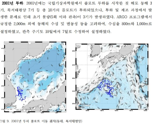 대양연구를 할 때는 중간수심인 2천 미터 정도로 세팅하지만 우리나라 연근해는 얕으니까, 북서태평양에 투하한 것은 2000미터, 동해에 투하한 것은 800미터와 1000미터로 세팅.