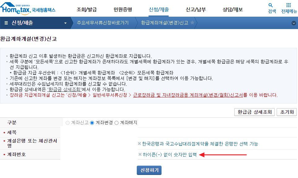 환급계좌번호입력때 하이픈쓰지 말라는 소리 왜 적어놨나 모르겠어요..