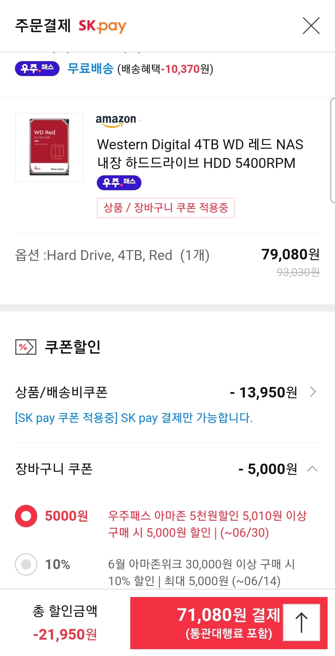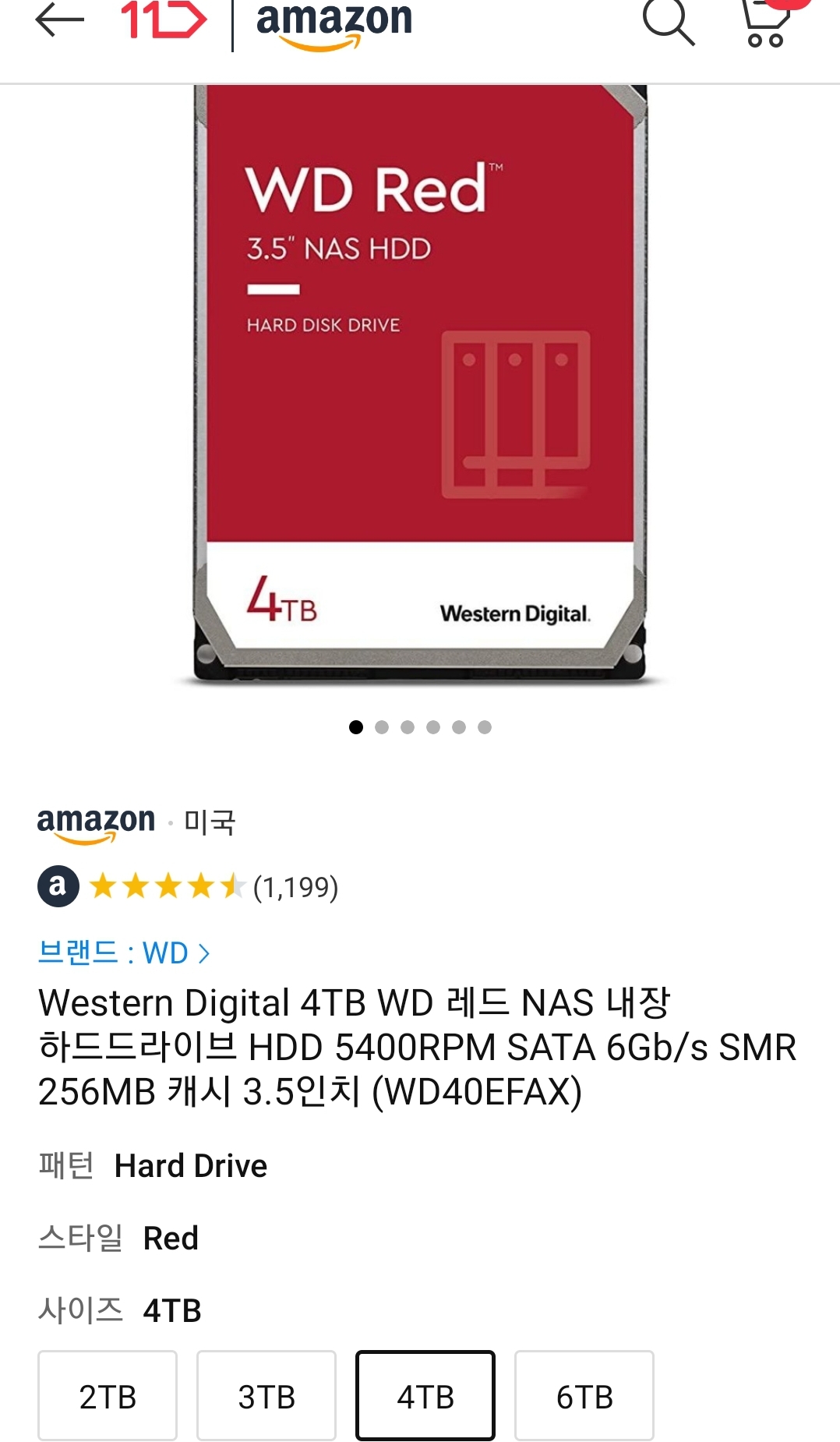 (11번가-아마존) WD 4TB 레드 NAS SMR HDD (~7.1만원) 본문