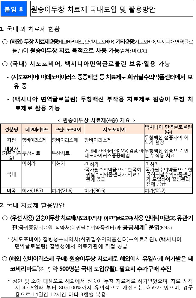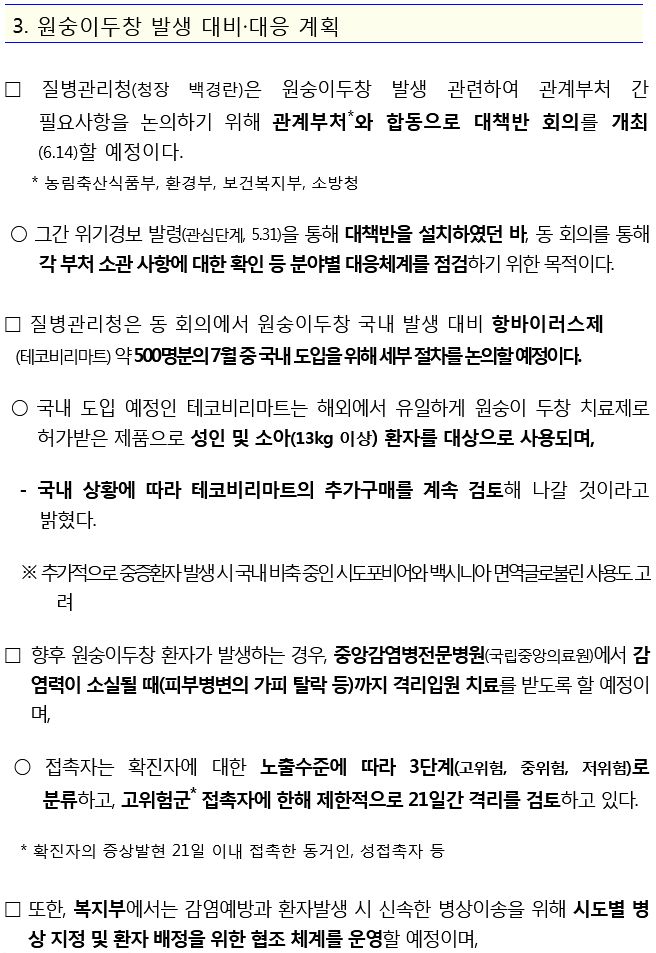질병관리청 6월 14일 보도자료에서, 원숭이두창관련 내용입니다.