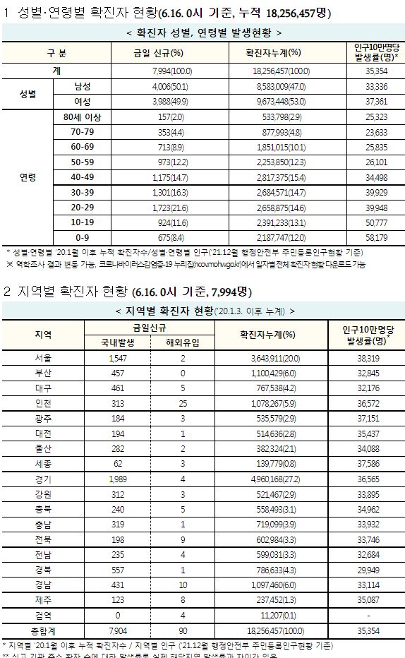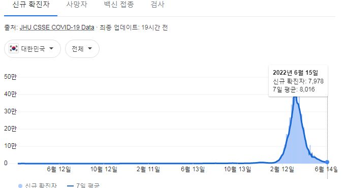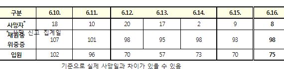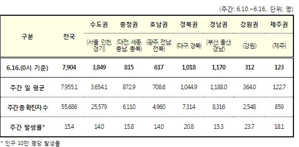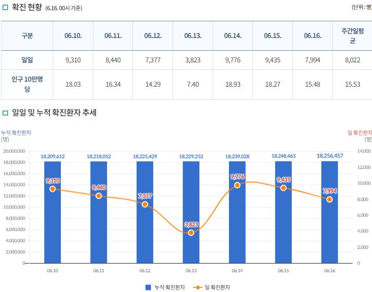 코로나19집계(2022.6.16. 0시기준): 확진 +7994명, 사망 +8명, 재택치료 4.6만(집중관리 2.7천) 본문