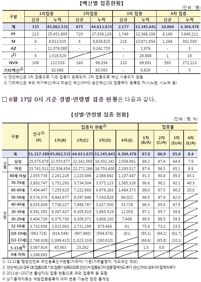 | 코로나19(2022.6.16) 예방접종 추진 현황, 4차접종 관련 통계, 재감염 추정사례 등 (0) | 2022.06.17 |
