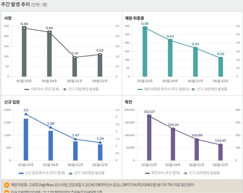 | 코로나19(2022.6.21) 주간 발생상황: 신규 발생 최근 13주간 지속 감소 (일부만) (0) | 2022.06.21 |