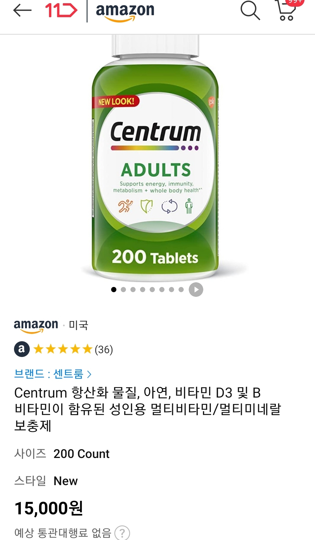 | (11번가-아마존) 센트룸 종합비타민 200알 1병(1만원/우주패스) (0) | 2022.06.01 |