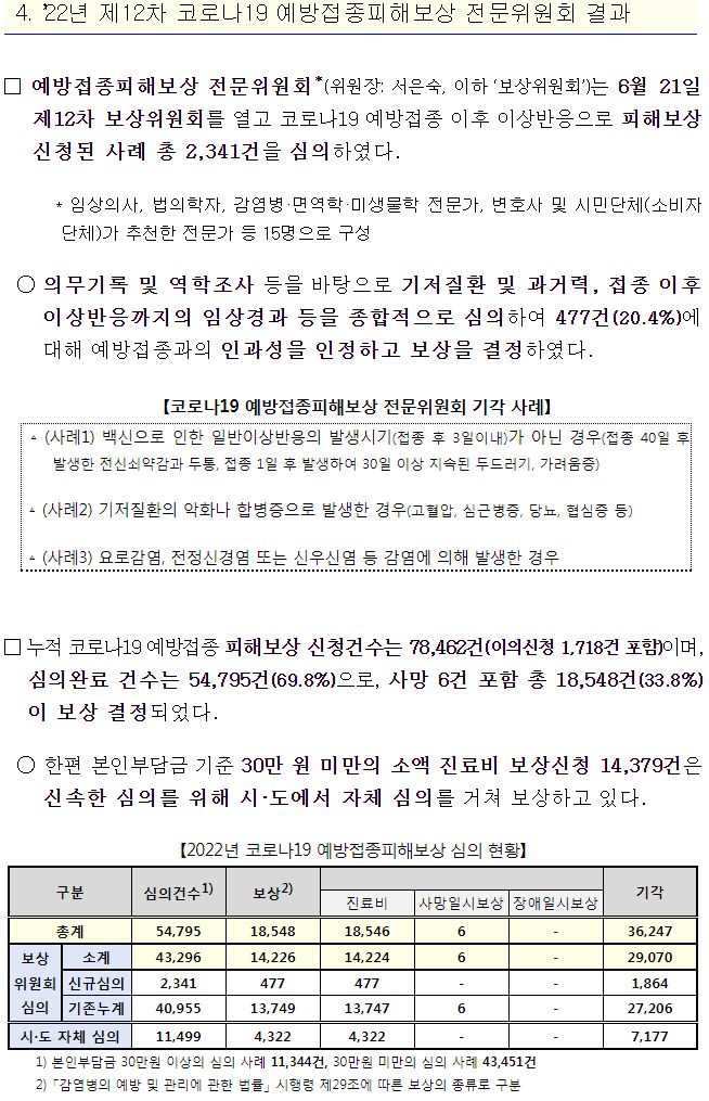 '22년 제12차 코로나19 예방접종피해보상 전문위원회 결과