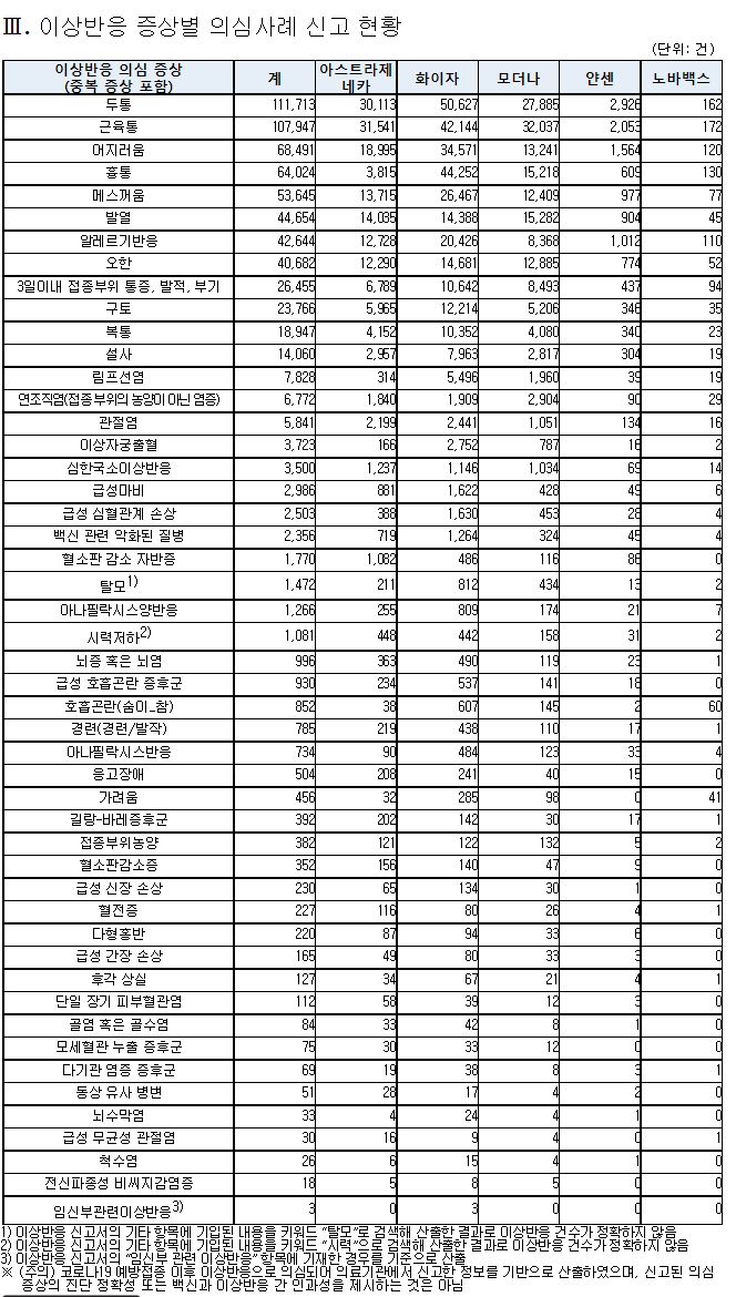 이상반응 신고현황 주간 분석 결과(68주차)