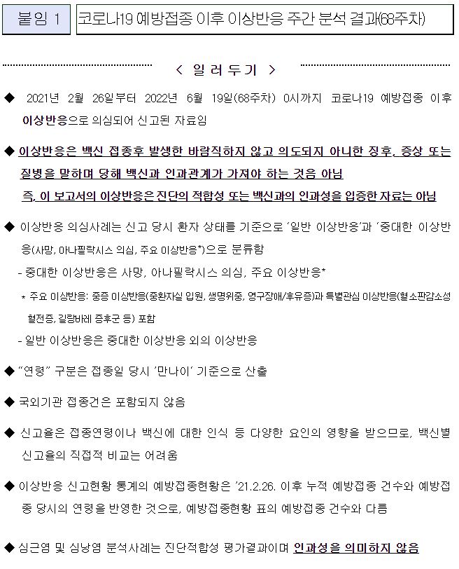 코로나19(2022.6.23)치료제 ‘팍스로비드 중증예방효과 분석’/:/ 이상반응 신고현황 주간 분석 결과(68주차) /:/ 22년 제12차 코로나19 예방접종피해보상 전문위원회