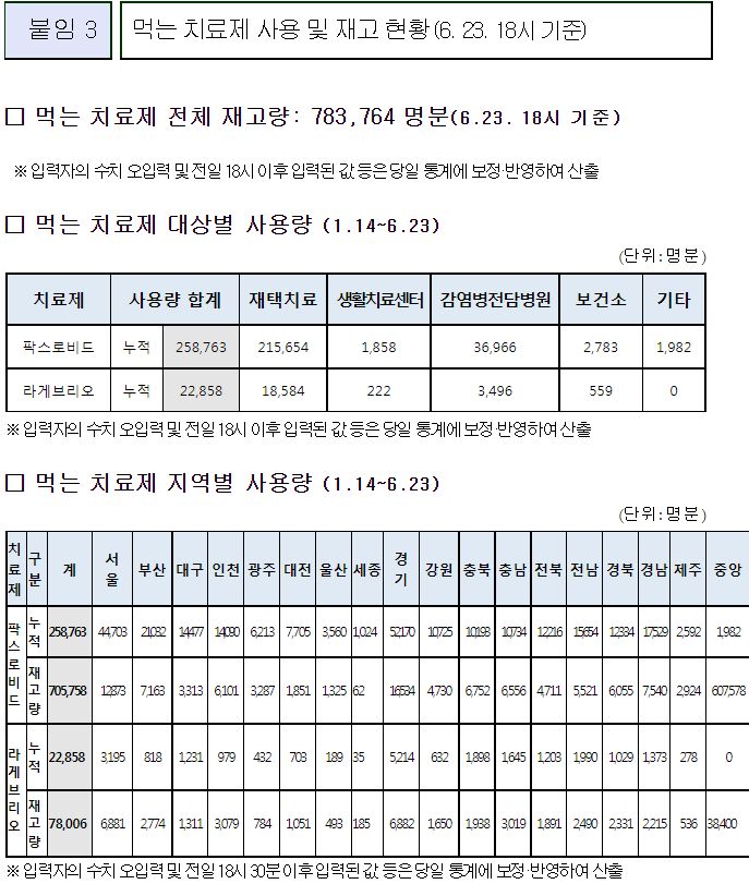 먹는 치료제 사용 및 재고 현황