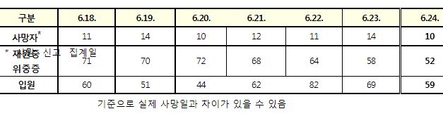 코로나19집계(2022.6.24. 0시기준): 확진: +7227명, 사망 +10명, 재택치료 4.1만(집중관리 1.9천)/:/ 먹는 치료제 재고와 사용 본문