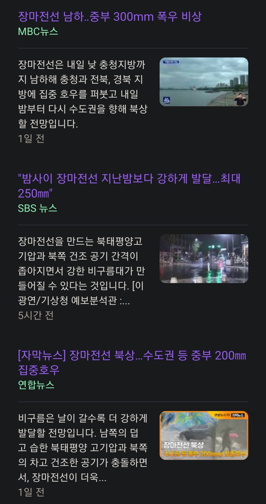 저희 동네는 비 자체는 그낭 저냥입니다. 어르신말씀도 이게 무슨 장마냐고.. 1