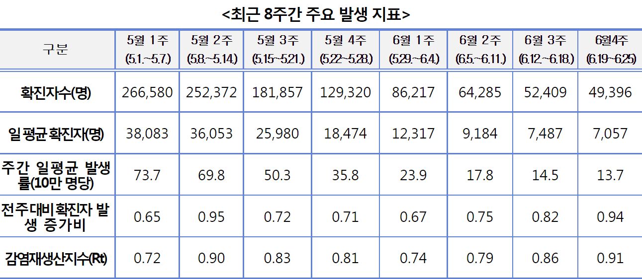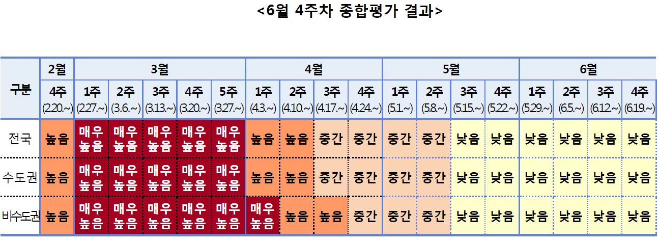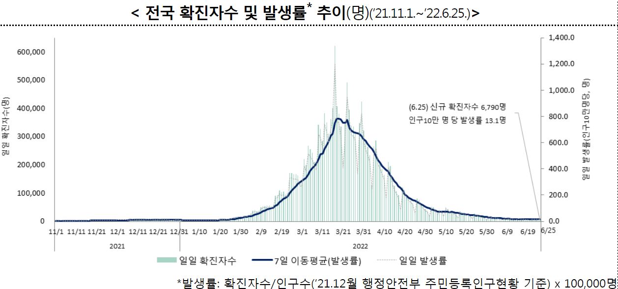 코로나19(2022.6.29) 주간 발생 동향 및 위험도 평가: 낮음 등 본문