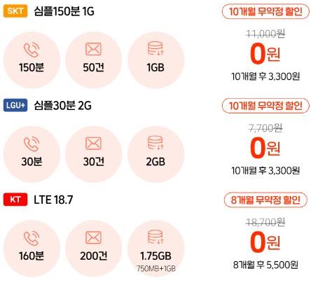 무료나 초저가요금제인 만큼 기간한정입니다. 요금제마다 다르기도 하니 체크.