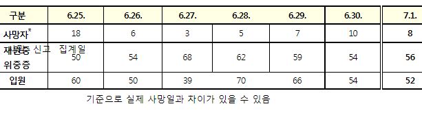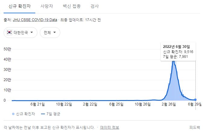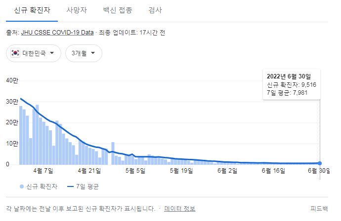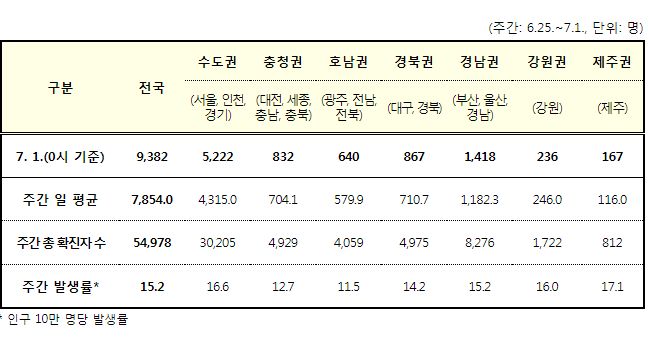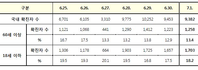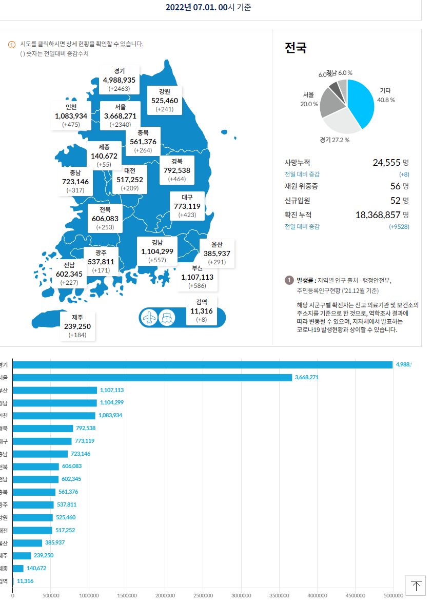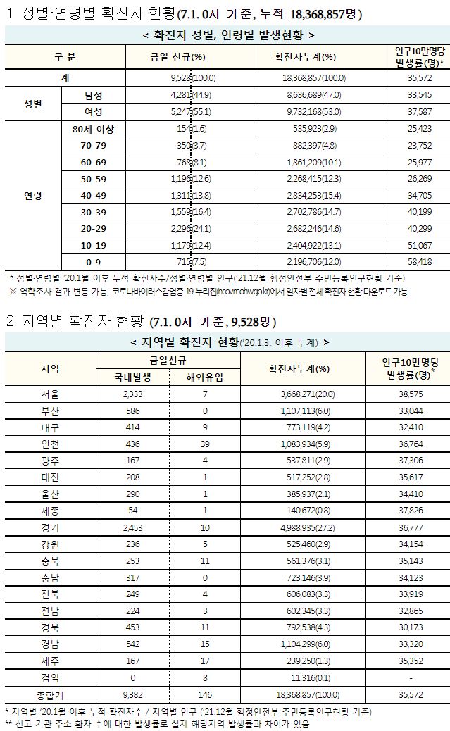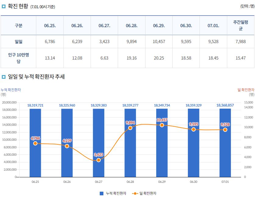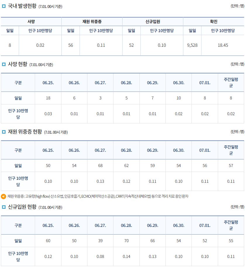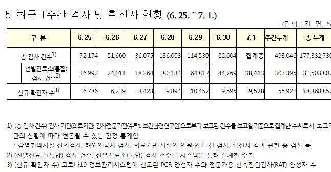 코로나19집계(2022.7.1. 0시기준): 확진 +9528명, 사망 +8명, 재택치료 4.7만(집중관리 1.9천) 본문