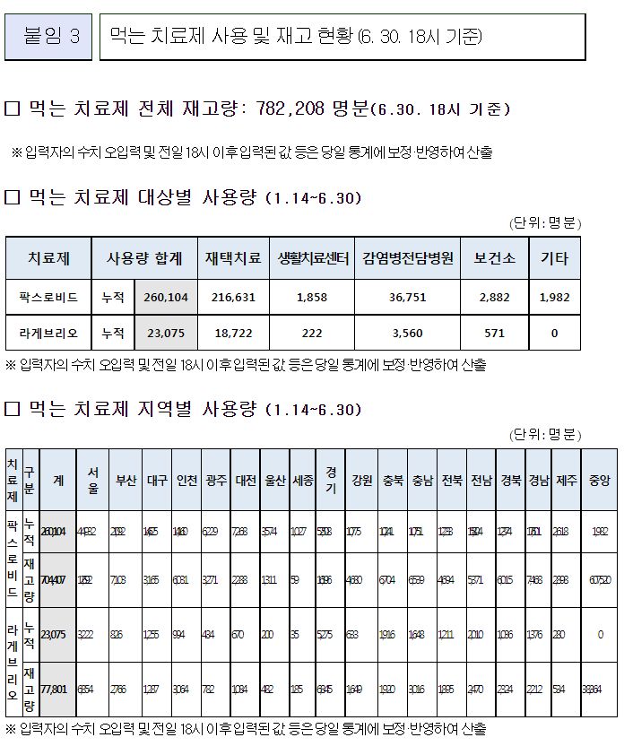 먹는치료제 재고는 78만 명 분