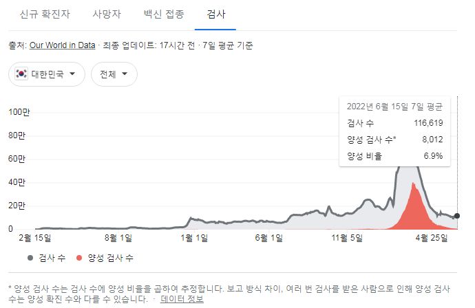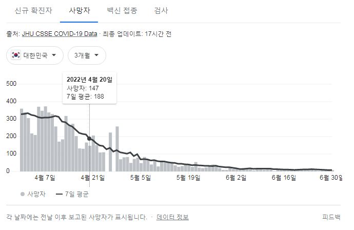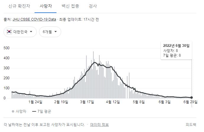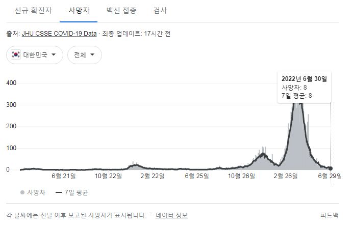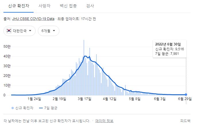질병관리청 오늘오전 발표에 대응하는 구글그래프는 미국시간이 바뀌는 오후에 나옵니다.