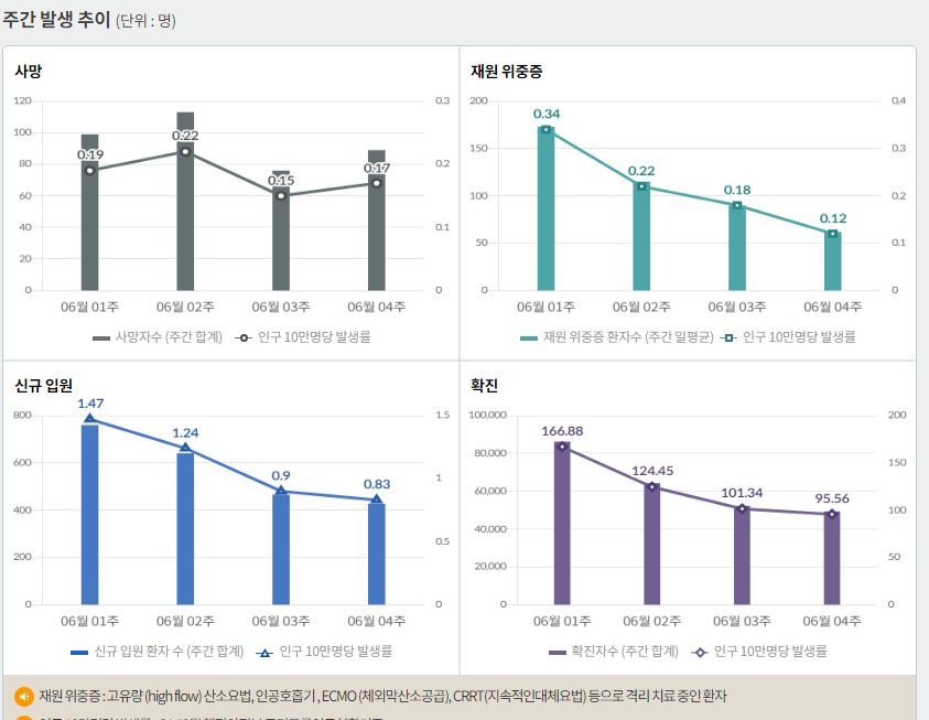 요즘 주간 입원 및 집중관리대상 확진자수가 적기 때문에, 이 정도 재고면 충분해보입니다.