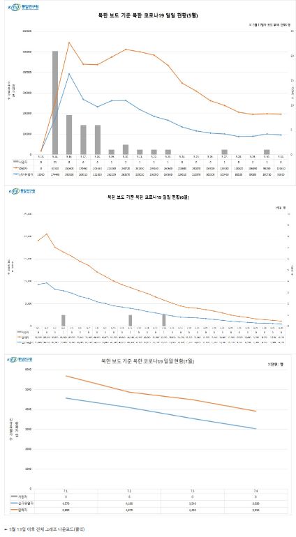 남북 간 코로나19 진단 기준이 완전히 다르다(......) 한국은 'PCR-유전자 증폭 검사', 북한은 '증상'으로 분류(......) 코로나는 걸려도 증상이 전혀 없을 수 있기 때문에 PCR 검사를 하지 않으면 모르고 지나치는 경우도 허다하다. 따라서 북한이 단순히 '증상'만으로 신규 발열자를 가려낸다면 구멍이 존재할 가능성이 높다.