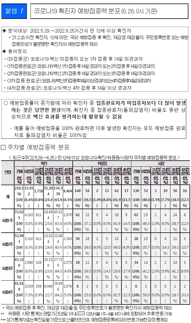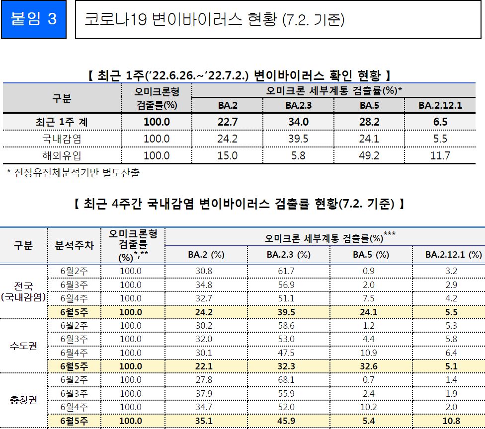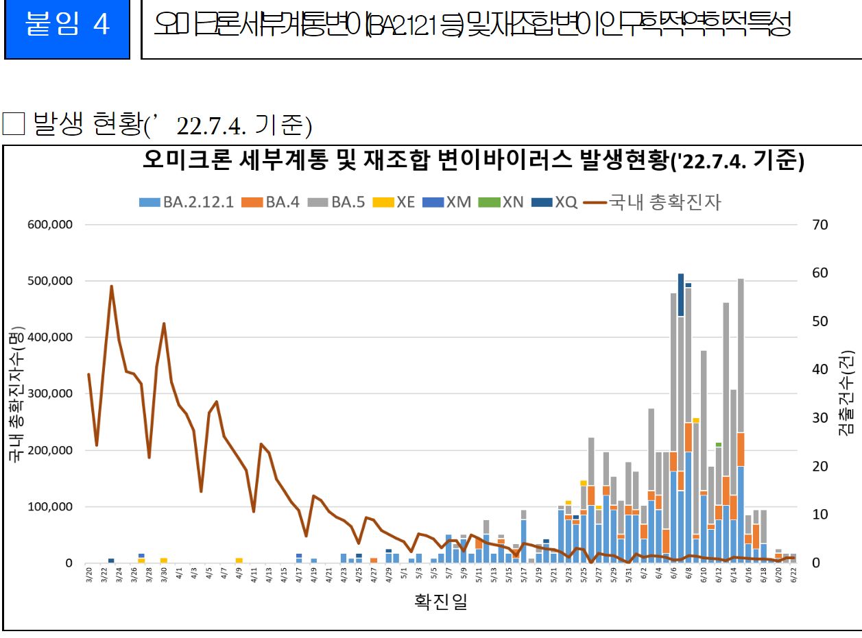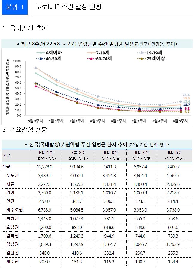 코로나19(2022.7.5) 주간 발생 동향 및 위험도 평가: BA.4/5변이 증가.★ "예방접종을 맞으시오."/:/ 원숭이두창 관련 보도자료 본문