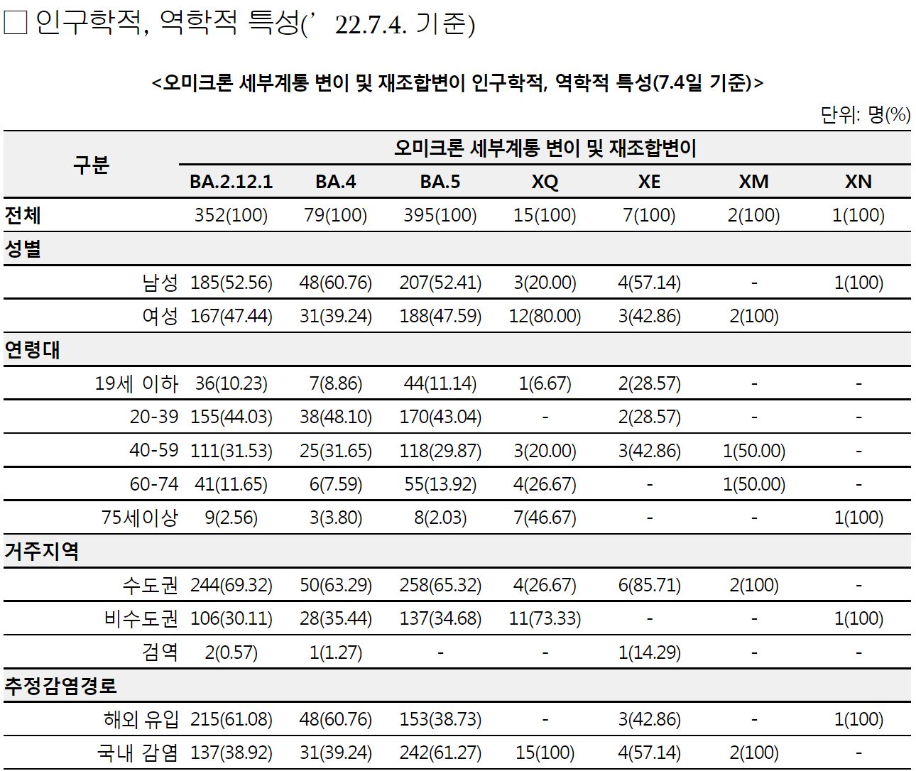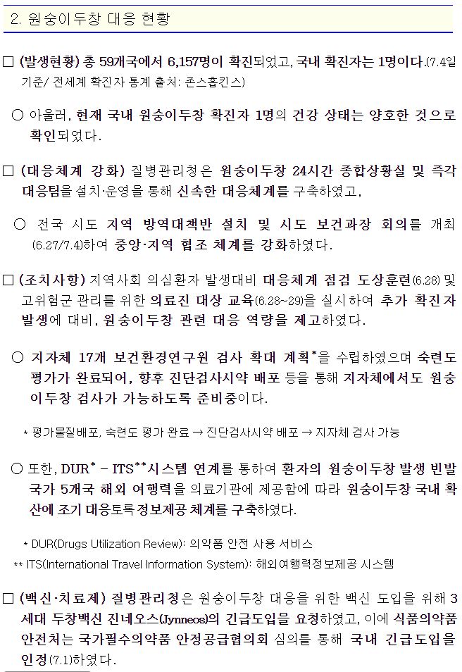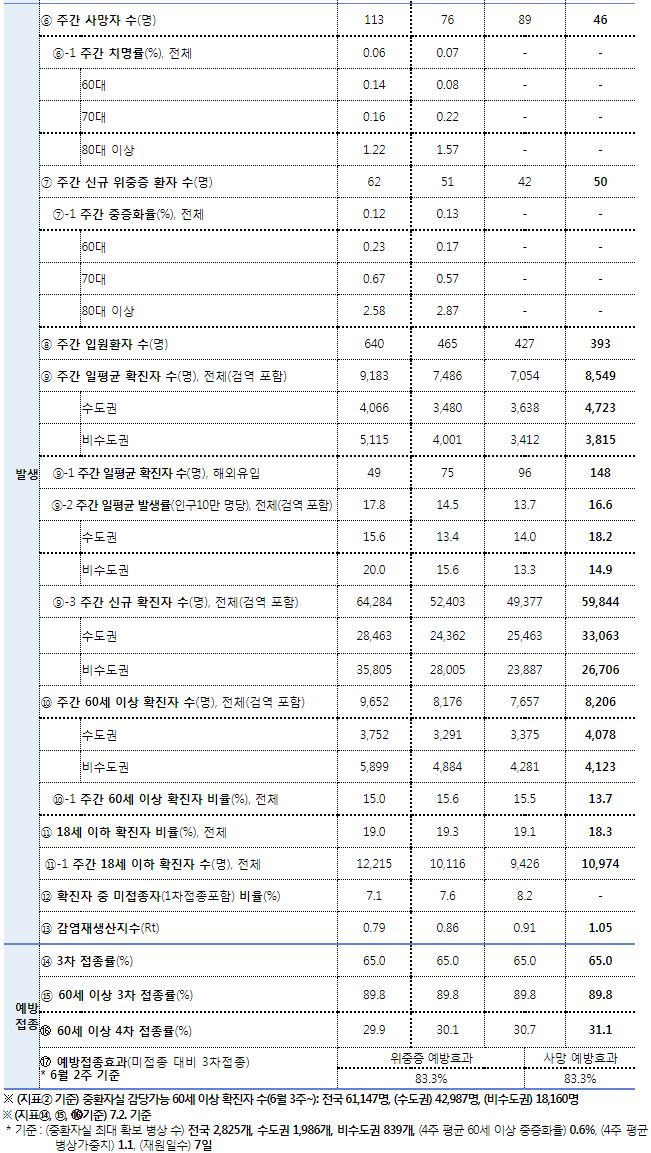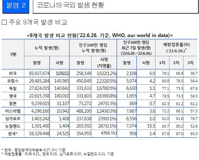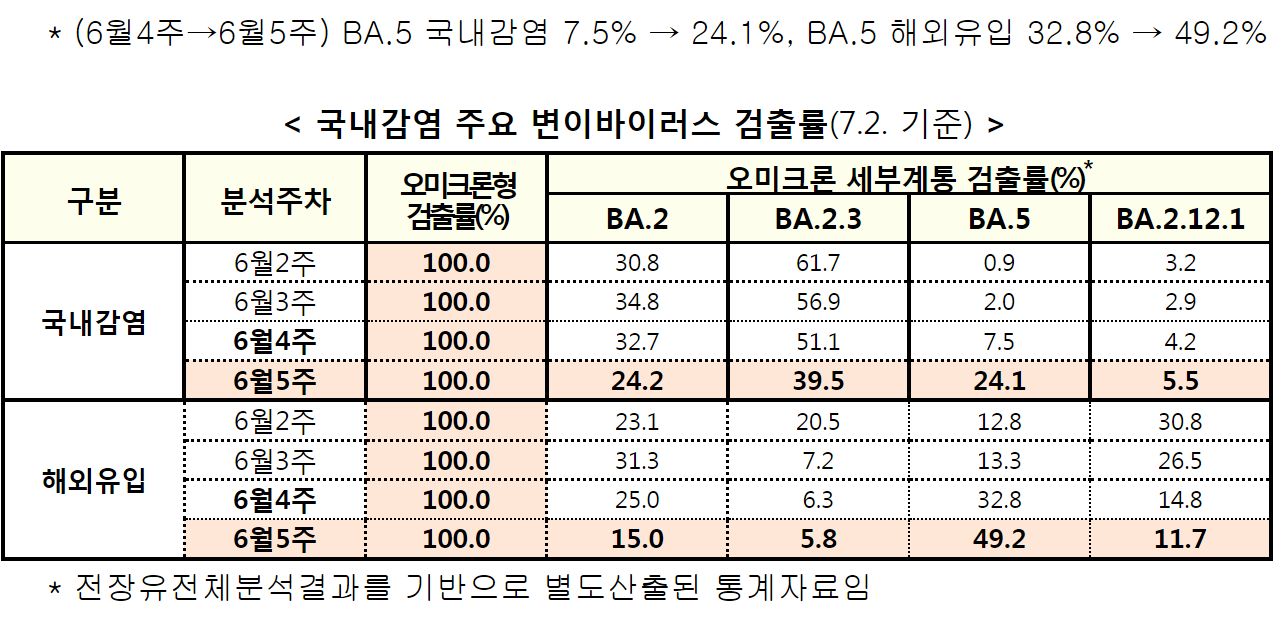 코로나19(2022.7.5) 주간 발생 동향 및 위험도 평가: BA.4/5변이 증가.★ "예방접종을 맞으시오."/:/ 원숭이두창 관련 보도자료 본문