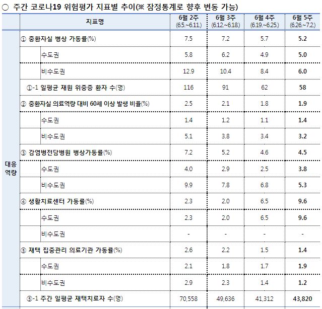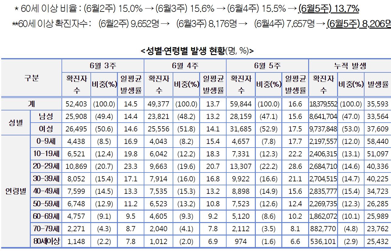 확진자집계는 6월 4주에 최저를 찍고 5주째에 증가. 감염재생산지수(Rt) 1.05