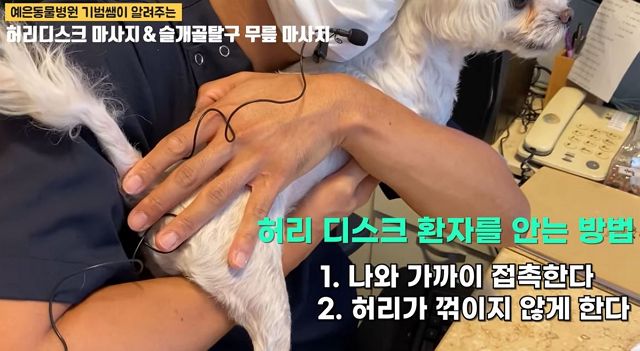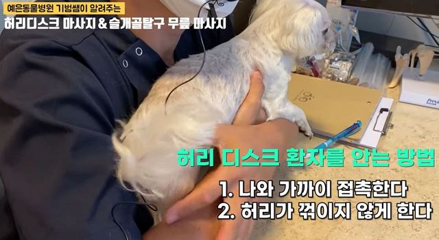 "디스크가 있는 강아지들은 허리 양옆이나 겨드랑이로 안으려 하면 매우 싫어하거나 아파한다"고.. 어, 그래?.