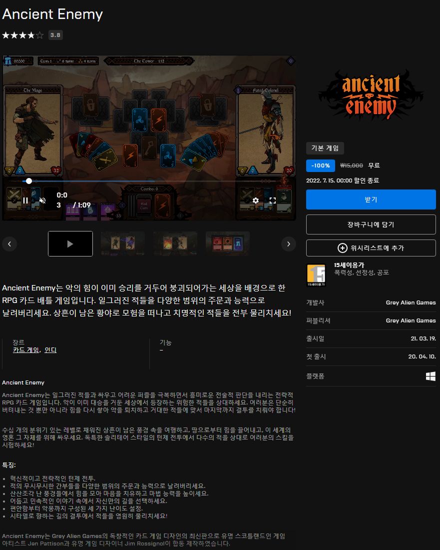 (에픽게임즈 무료게임) Ancient Enemy 본문