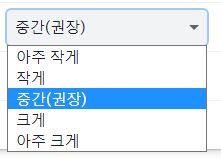 여기서 크게, 아주 크게로 바꿔주면서 맞는 크기를 찾아도 되고, (1번)