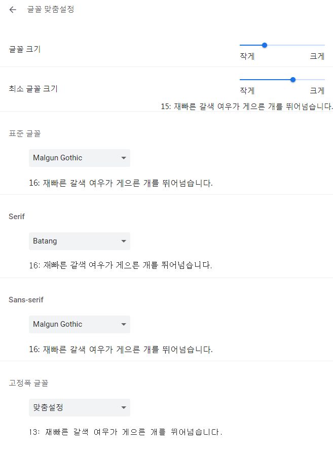 구글 크롬 웹브라우저, 화면표시글꼴 크기 본문