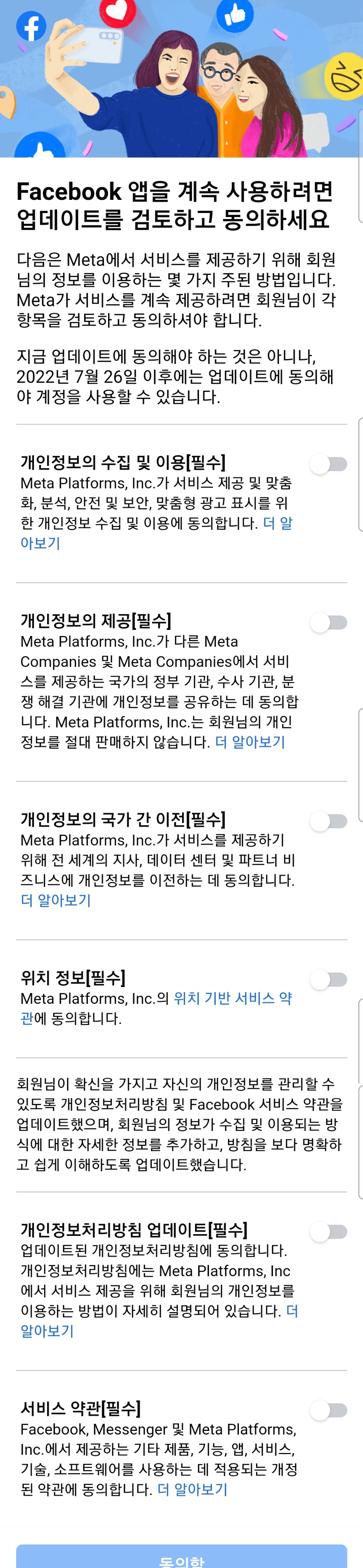 요즘 페이스북(facebook.com) 앱이 요구하는 필수동의항목 본문