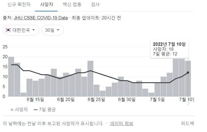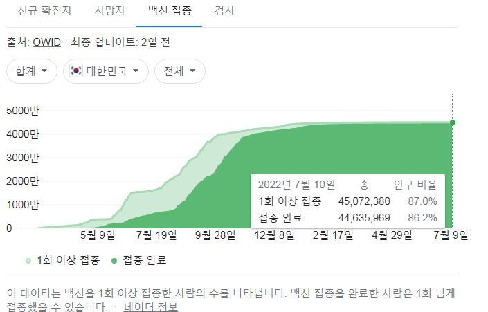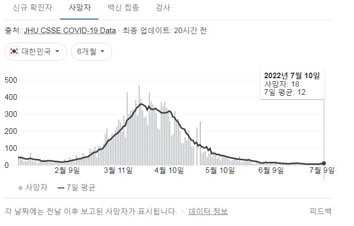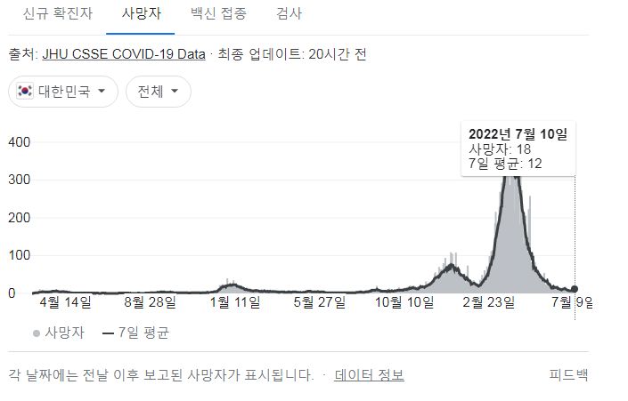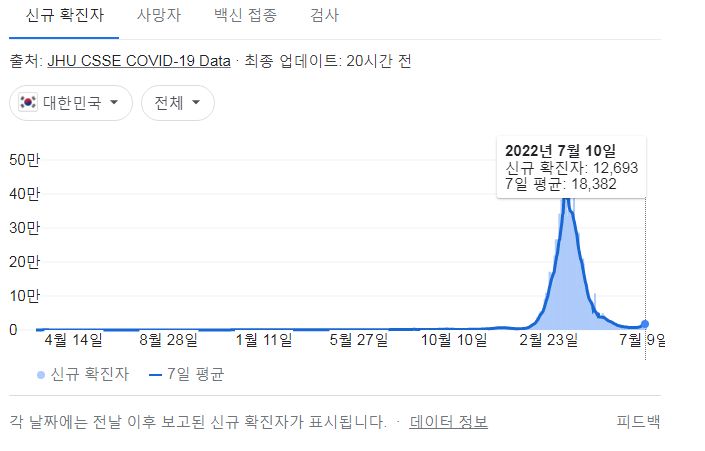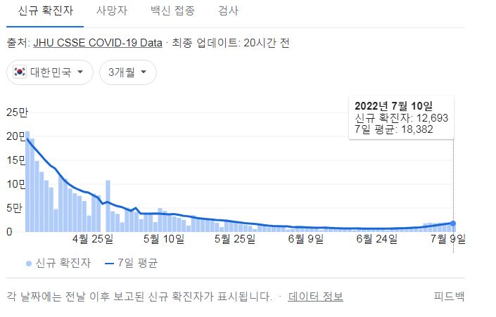 질병관리청 오늘발표분을 반영한 구글그래프는 오후, 미국시간이 날짜변경될 때를 전후해 갱신됩니다.